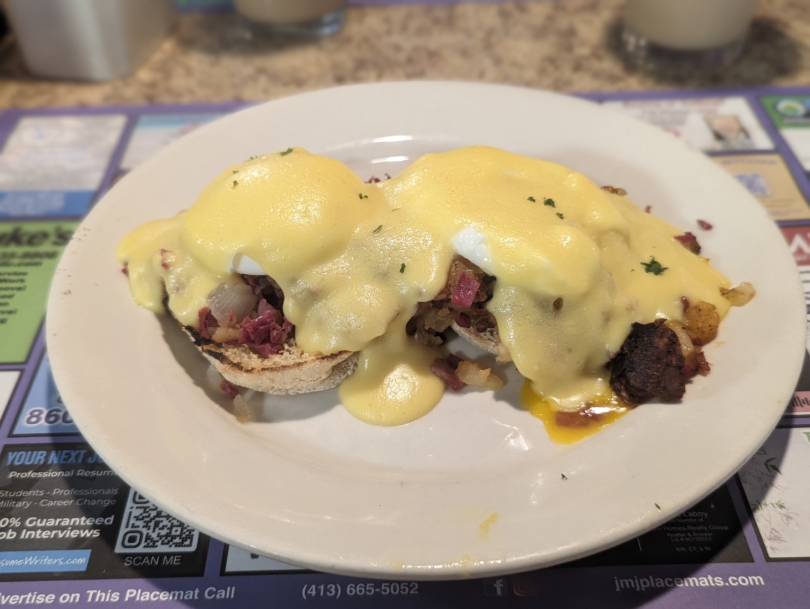 Luckily, food was decent. Homemade hash was okay, bit small in portion. Hollandaise was tasty. Even though home fries aren't red bliss, they're obviously chopped in house, not bad.